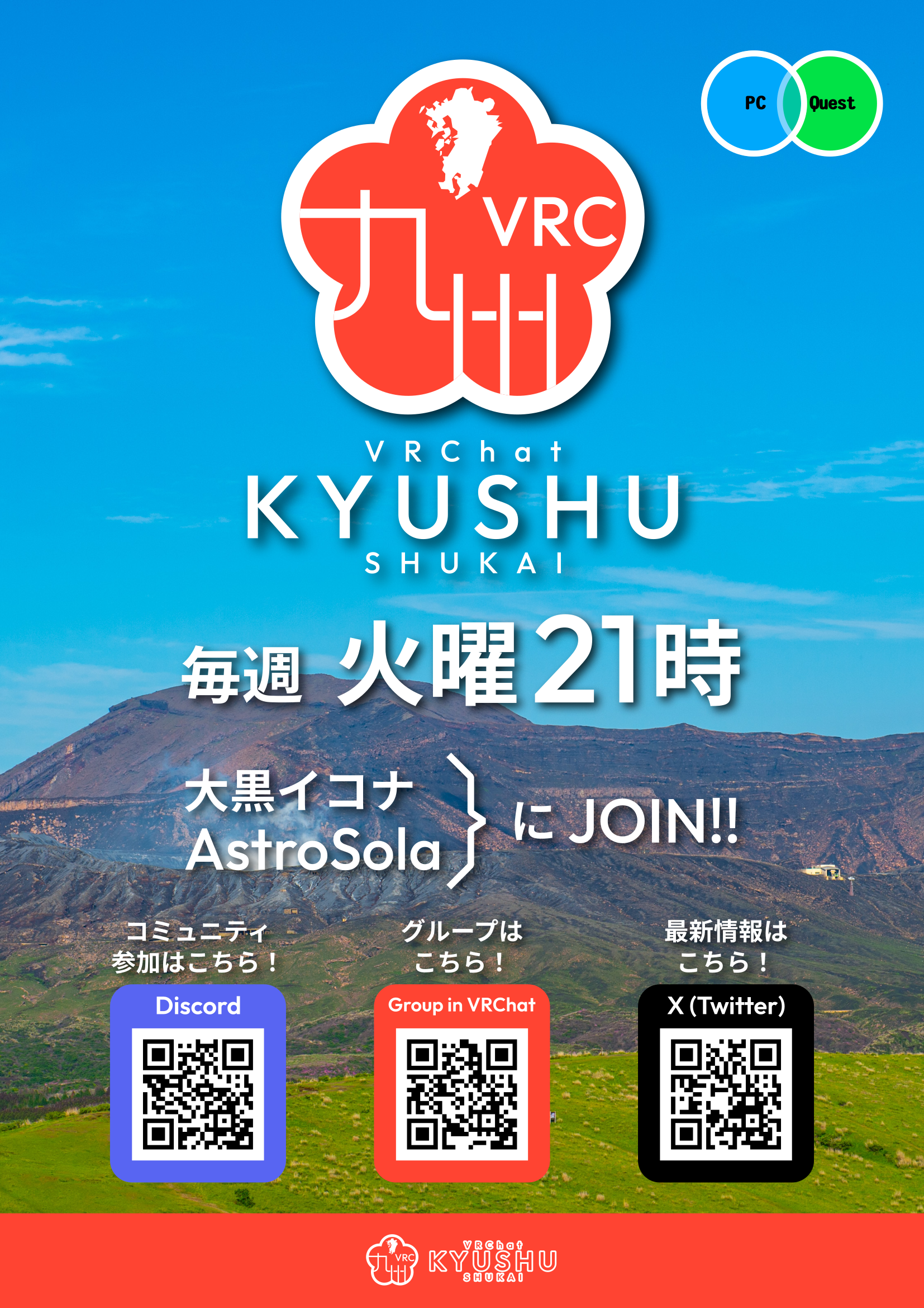 九州エリアにゆかりのあるVRChatユーザーを中心としたコミュニティ、交流集会です。